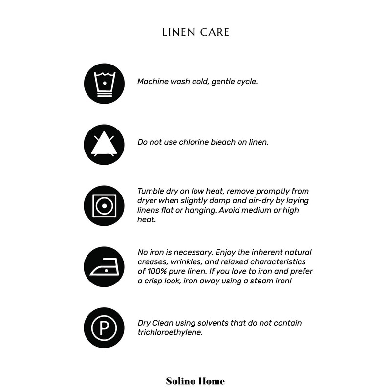 - Easy Care - Machine Washable, Low Iron as Needed, Steam Iron for a crisp look. The beauty of each pure linen piece is the natural fibers and classic aesthetic that mellows with each washing, betters with age and requires minimal care