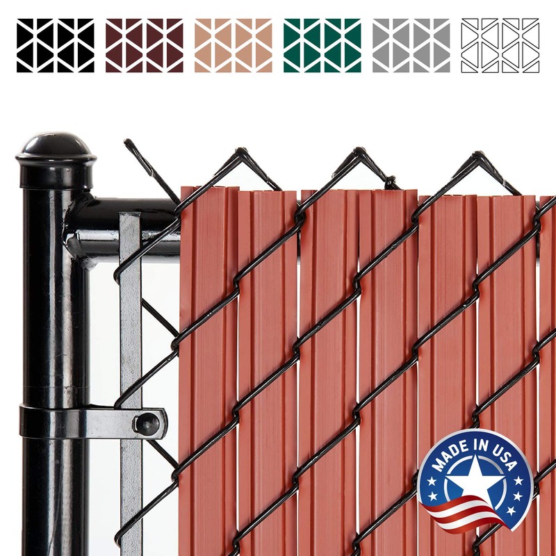 SoliTube Slat Privacy Inserts for Chain-Link Fence, Double-Wall Vertical Bottom-Locking Slats with Wings for 4' Fence Height (Redwood)
