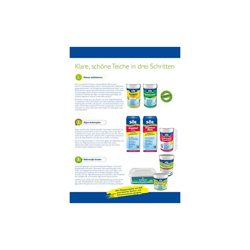 - TEICHPFLEGE GEGEN FADENALGEN: Hochwirksamer Söll FadenalgenVernichter (500 g für 16.000 Liter) mit Sofortwirkung durch Aktivsauerstoff verhilft bereits in kurzer Zeit zu fadenalgenfreiem Teichwasser im Gartenteich
