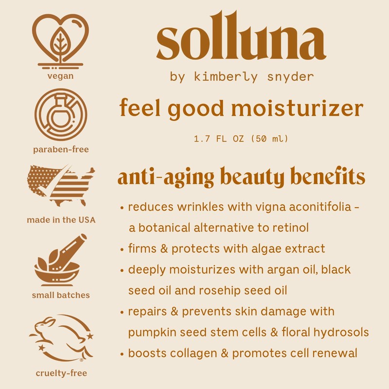 Solluna by Kimberly Snyder Feel Good Moisturizer — Hydrating, Collagen Boosting & Anti-Aging Moisturizer with Retinol Alternative, Natural Oils, Plant Stem Cells & Extracts (1.7oz) Vegan & Non-GMO