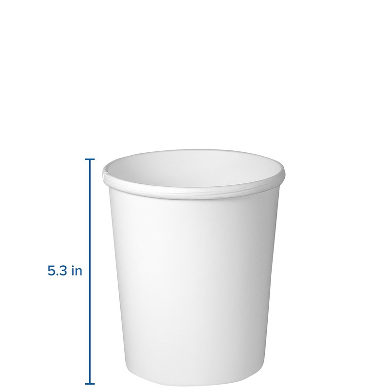 - Disposable 32 oz. white paper container for transporting and serving hot and cold food items
