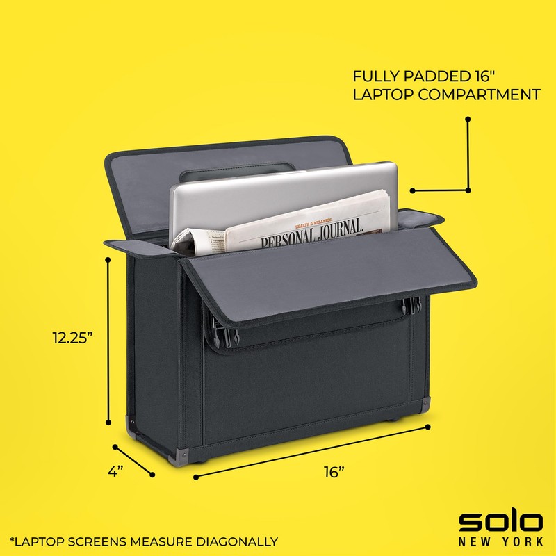 Solo New York Catalog Case - Laptop Carrying Bag for Travel & Work, Briefcase for Women & Men, Carry On Size, Front Organizer Section, Fits 16" Computer - Classic, Black