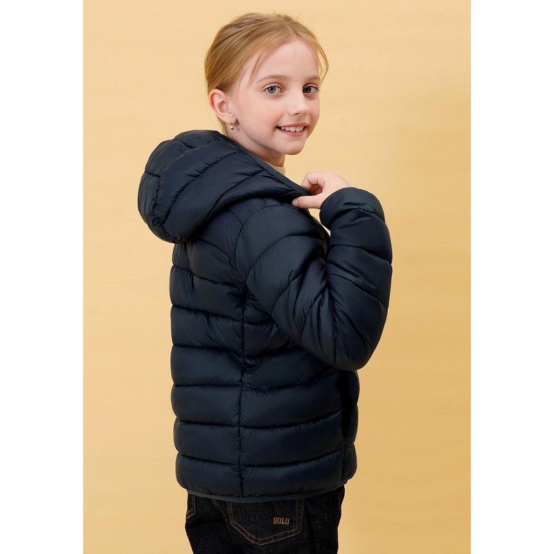 SOLOCOTE Girls Winter Coats Lightweight Water-Resistant Windproof Packable Hooded Down Like Padding Jacket, SLN2108-Navy-9-10Y