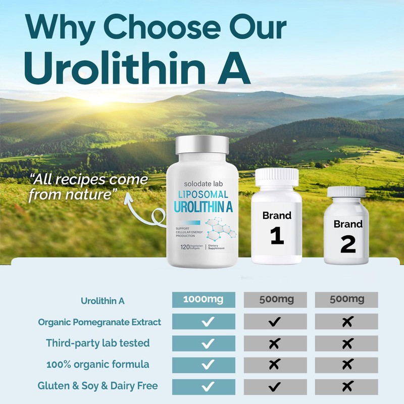 solodate lab Urolithin A Supplement, Cellular Renewal and Mitochondrial Support for Energy, Anti-Aging & Muscle
