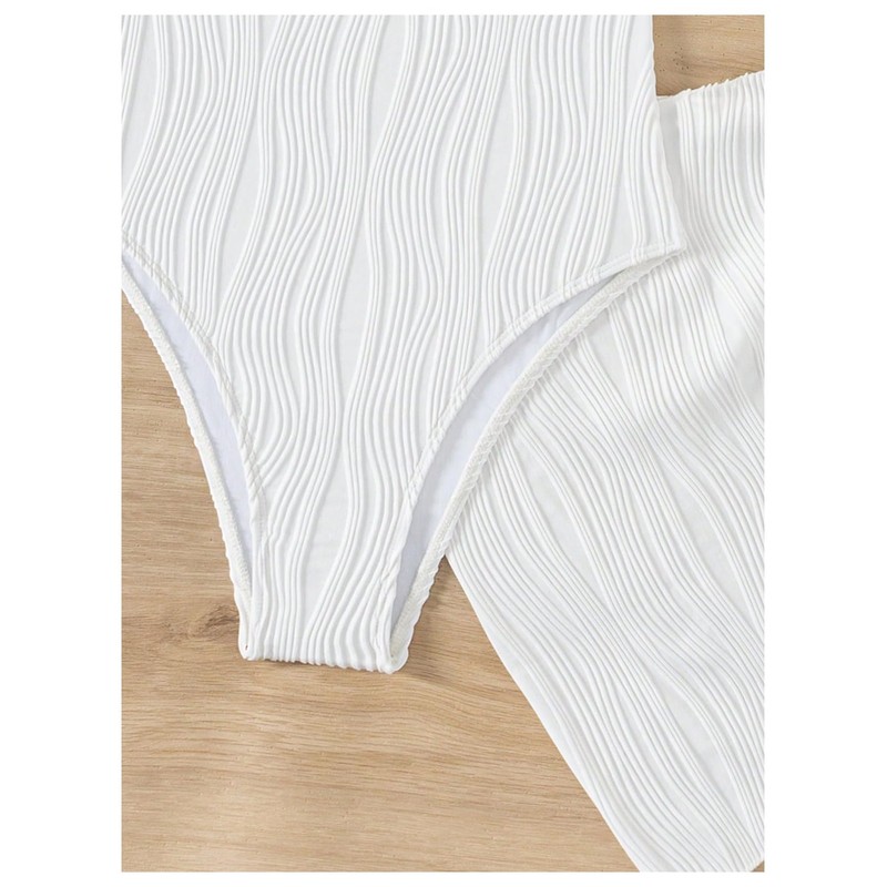 SOLY HUX Women's One Piece Swimsuit Criss Cross Halter Cut Out Bathing Suit with Cover Up Solid White Medium