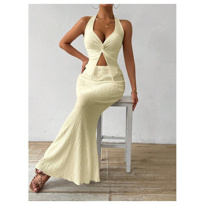 - Feature: Halter, tie back, backless, twist front, sleeveless, cami tops and bodycon long skirt, 2 piece skirt set for women, fashionable