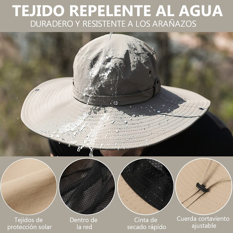 - Diseño Impermeable y Transpirable: Sombrero para sol hombre está hecho de tejido repelente al agua de alta calidad, resistente al desgaste y a los arañazos, y también en el sombreros para hombre diseñado con múltiples orificios de permeabilidad al aire para evitar elaburrimiento y detener la sudoración.