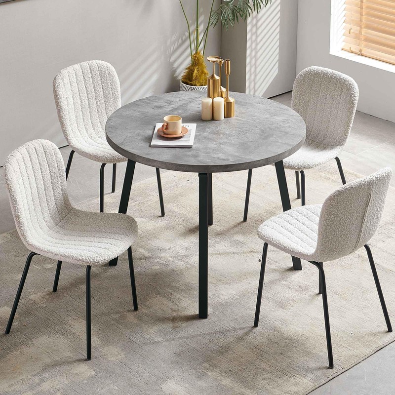 somedream Dining Chairs Set of 4 PU Leather Dining Room Chairs with Black Metal Legs, Mid Century Modern Dining Chairs for Kitchen & Dining Room - Boucle White