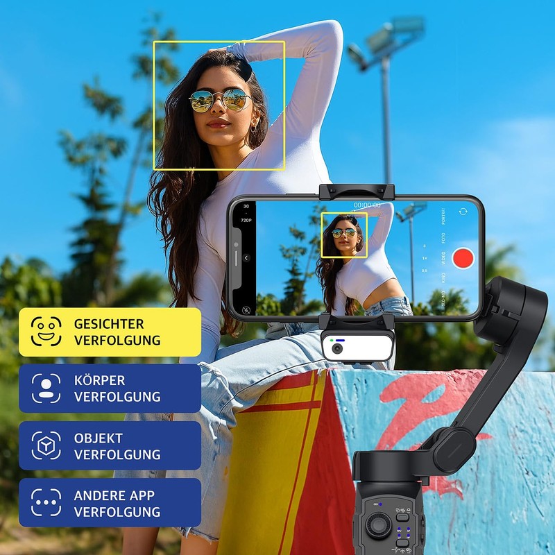 - Maße: 42 x 16 x 23 mm, Gewicht: 14 g. Gimbal für Smartphone - Erweitert Ihr Hand-Schwebestativ um eine Gesichtserkennung und -verfolgung