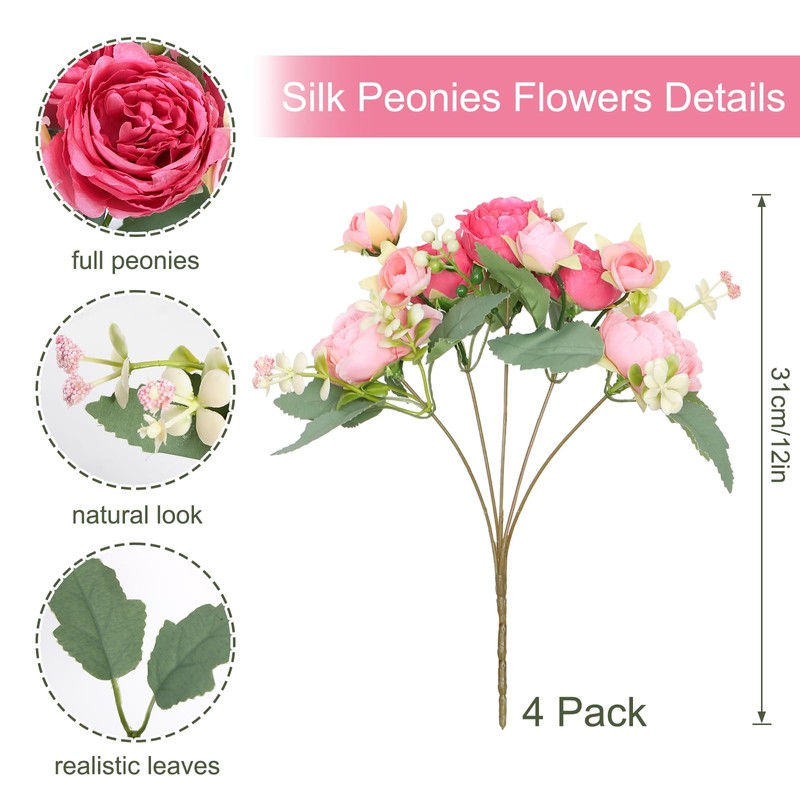 Fake peony flowers bouquets can be easily bent to fit specific vase shapes or to achieve a unique style floral arrangement. Perfect for table centerpieces, flower