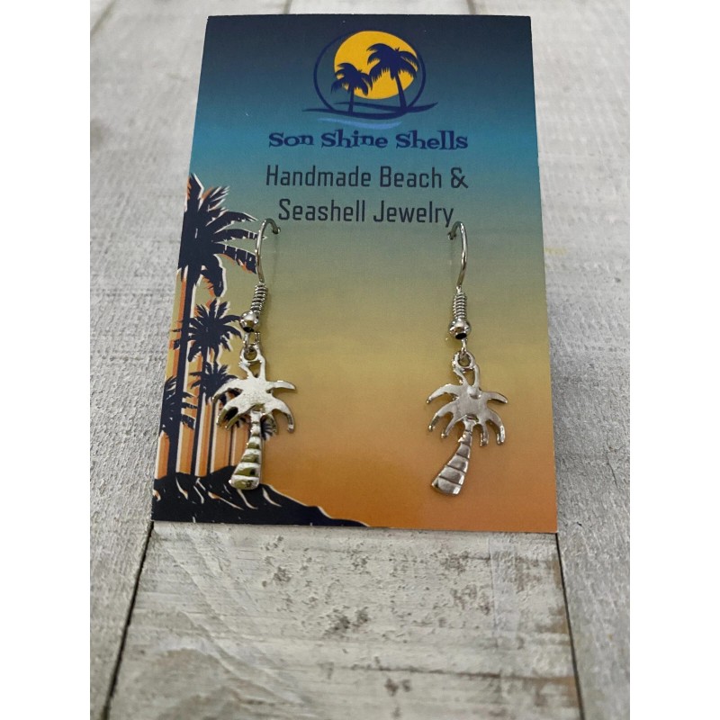 Son Shine Shells New in Box Silver Palm Tree Earrings - Nickel Free Handmade