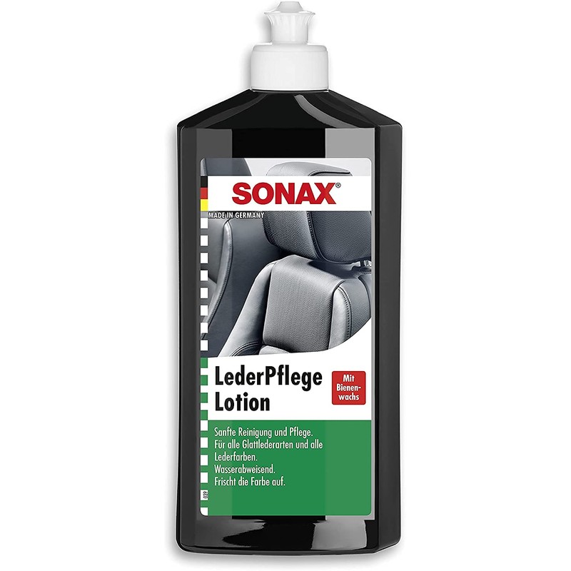 SONAX Lederpflegelotion (500 ml) reinigt Glattleder jeder Farbe, macht das Leder geschmeidig + frischt die Farben auf, mit Bienenwachs, UV-Schutz | Art.Nr. 02912000-820