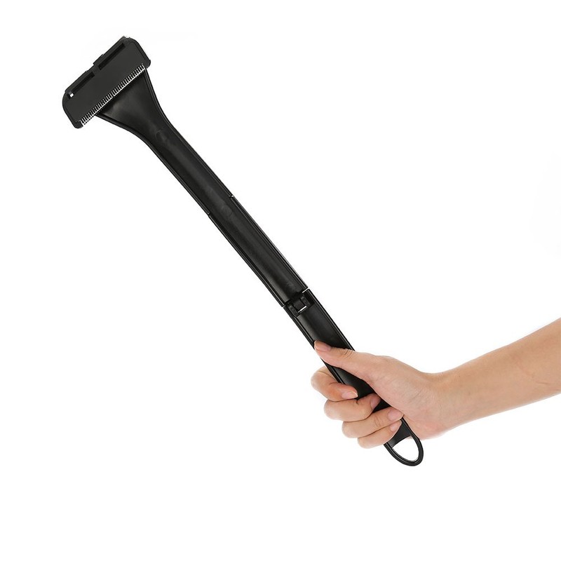 - La maquinilla de afeitar de mango largo te ayuda a llegar a todas las áreas fácilmente y a eliminar el vello de la espalda y el cuerpo, tanto para uso húmedo como seco