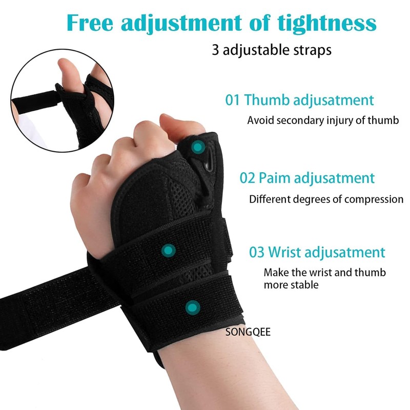 • 【THUMB SUPPORT FOR ARTHRITIS】- Instantly thumb pain and fatigue relief. Thumb spica splint can stabilize and support your injured thumb joint. Helping you to get relief from aching, sore, inflammation caused by trigger thumb, weak finger, ligament tears, sprains, tendonitis, repetitive stress injury, CMC, Carpel Tunnel Syndrome