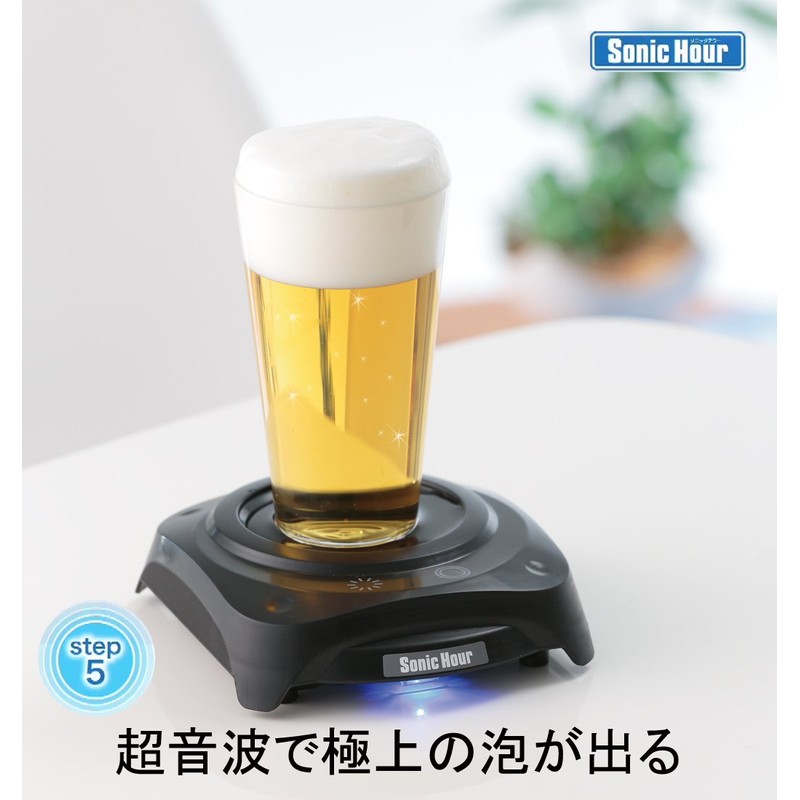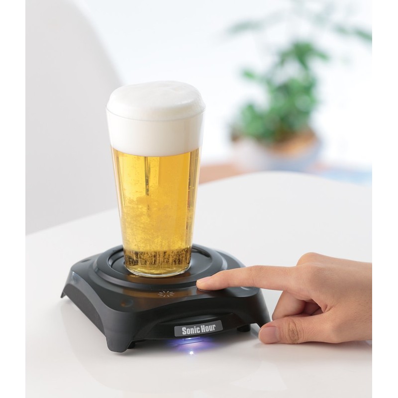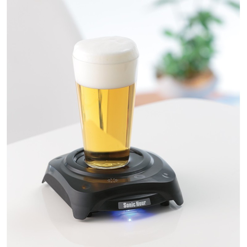 - No foam? No problem! All you have to do is set a foamless beer on the electronic plate. Press the button and the UltraSound waves send the perfect amount of foam to the top of the beer. Not only that, but the Sonic Hour also has 8 awesome LED colors to create a sweet ambience while you get your foam on!