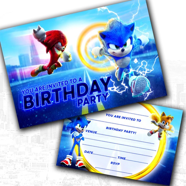 Sonic Party Invitations & Envelopes Birthday Invites (WRITE ON) (Pack of 20)