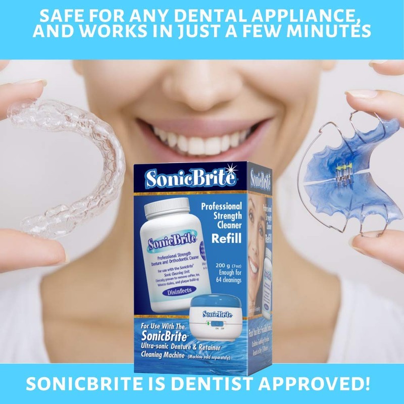 - CLEAN WITH POWER: Start using professional grade powder for a Deep cleaning of any dental appliance. The SonicBrite Cleaning Powder refill is designed for use with the SonicBrite Cleaning Sonic Cleaner.
