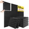 Sonicreative 12 Pack Pyramid Acoustic Foam Panels 1" X 12" X 12" High Density Soundproof Foam Panels for Wall, Quick-Recovery Noise Cancelling Wall Panels with 180 Pcs Double Side Adhesive