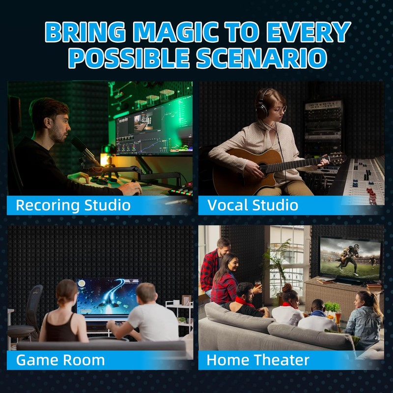 - 【ODOR FREE & COST EFFECTIVE OPTION】Our noise cancelling foam panels are flame retardant, odorless and non-toxic. Their high density, durable, and high resilience design ensures long-lasting performance. It is suitable for recording studios, rehearsal room, home theater, vocal studio, game room, control room and other places.