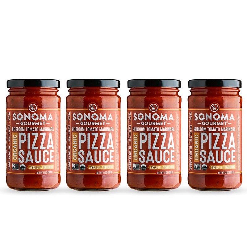 Sonoma Gourmet Heirloom Tomato Pizza Sauce | Made With Fresh Organic Tomatoes & Sweet Basil | Vegan & Gluten-Free | No Sugar Added | 12 Ounce Jars (Pack of 4)