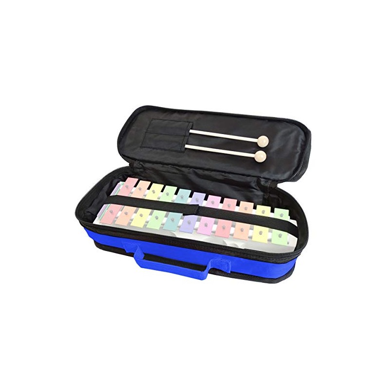 Zum Schutz Ihres Glockenspiels hat die Tasche im Inneren eine 5mm starke Polsterung. Mit den zwei Gummibändern mit Klettverschluss kann das Glockenspiel fixiert werden. Damit ist es sicher verstaut und die Klangplatten können nicht herausfallen.
