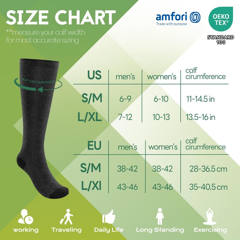 - 80% Viscose for Bamboo: These compression socks are made from 80% natural viscose for bamboo, offering excellent breathability, moisture-wicking, and softness. Warm in winter and cool in summer, making them ideal for individuals with sensitive skin or for prolonged wear. The viscose fibers absorb 3-4 times more moisture than cotton!