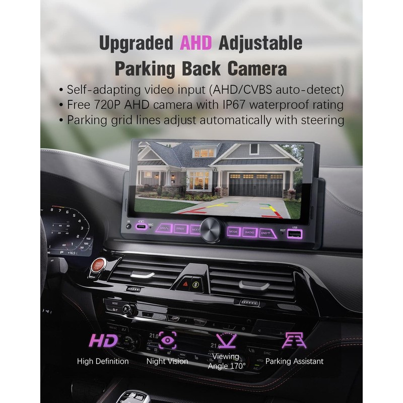 - 【Your All-in-One Android Auto Screen for Car】This single din radio with backup camera—seamlessly blending safety and smarts. The built-in AHD rearview ensures parking precision, while the vibrant Android Auto screen for car mirrors apps like Google Maps and Spotify wirelessly. Stream playlists via Bluetooth, or switch to FM/AM RDS for live traffic updates. From hands-free calls to crisp radio jams, every feature is designed for quick access, letting you focus on the road