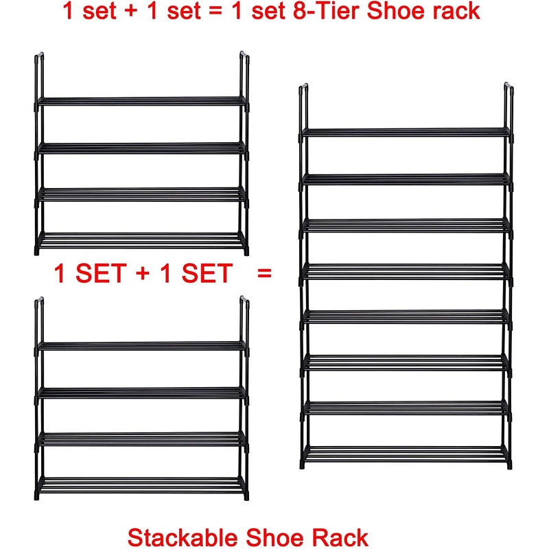 - PERFECT STORAGE SOLUTION:The length of the rack fits about 4 or 5 pairs on each Tier.The distance between each tier is 7.48”(19 cm),which makes it ideal for regular shoes.You can also store jackboots, boots etc on the top shelf.Provides generous storage space to neatly arrange clothes, toys, shoes and more, will suit your storage needs in various settings. It's a good storage helper for your whole family, add fun and functionality to your cube organizer!