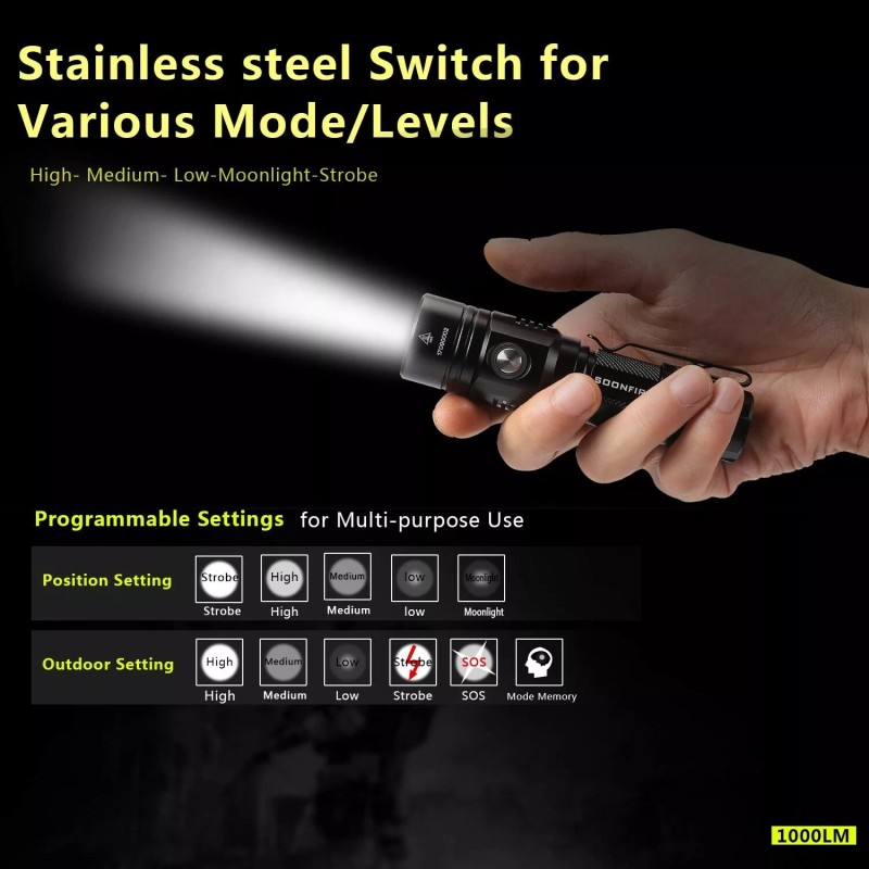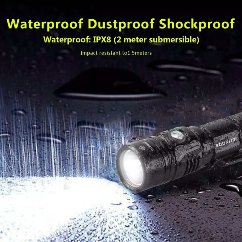 soonfire 1000 Lumens White LED Flashlight, E USB Rechargeable Waterproof Compact EDC L...