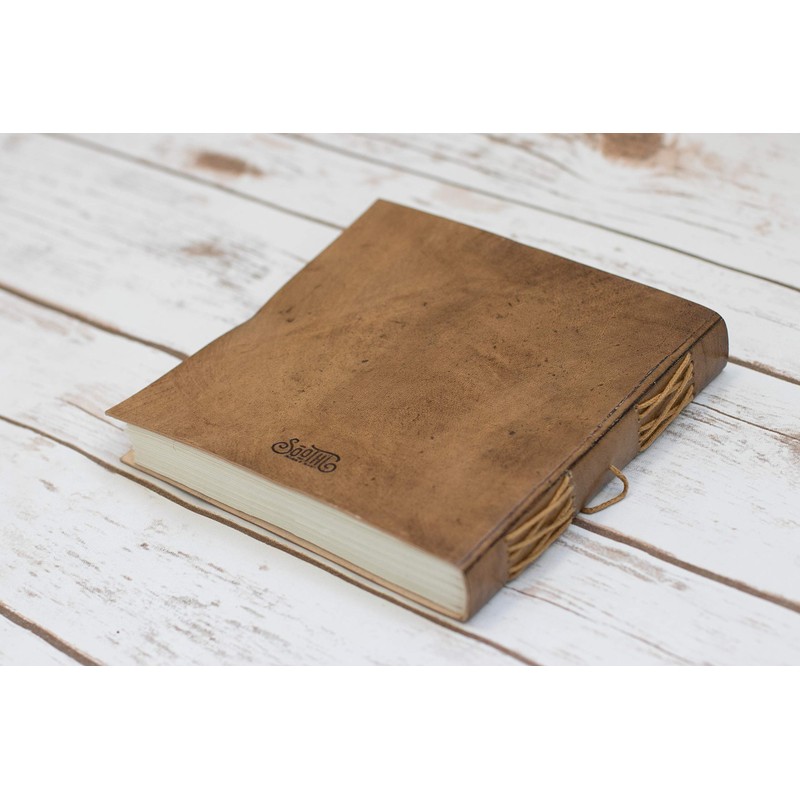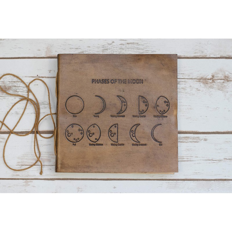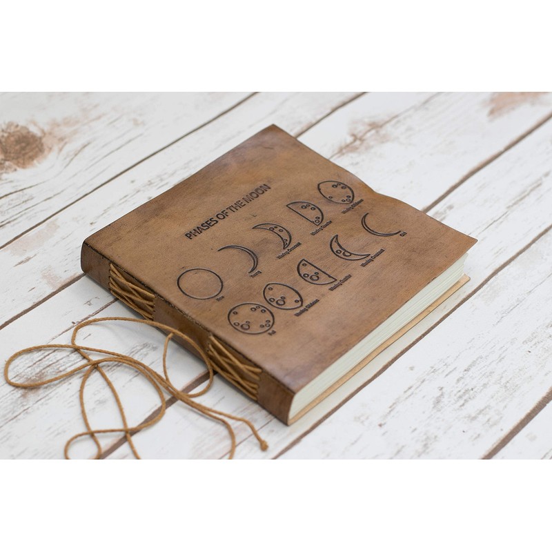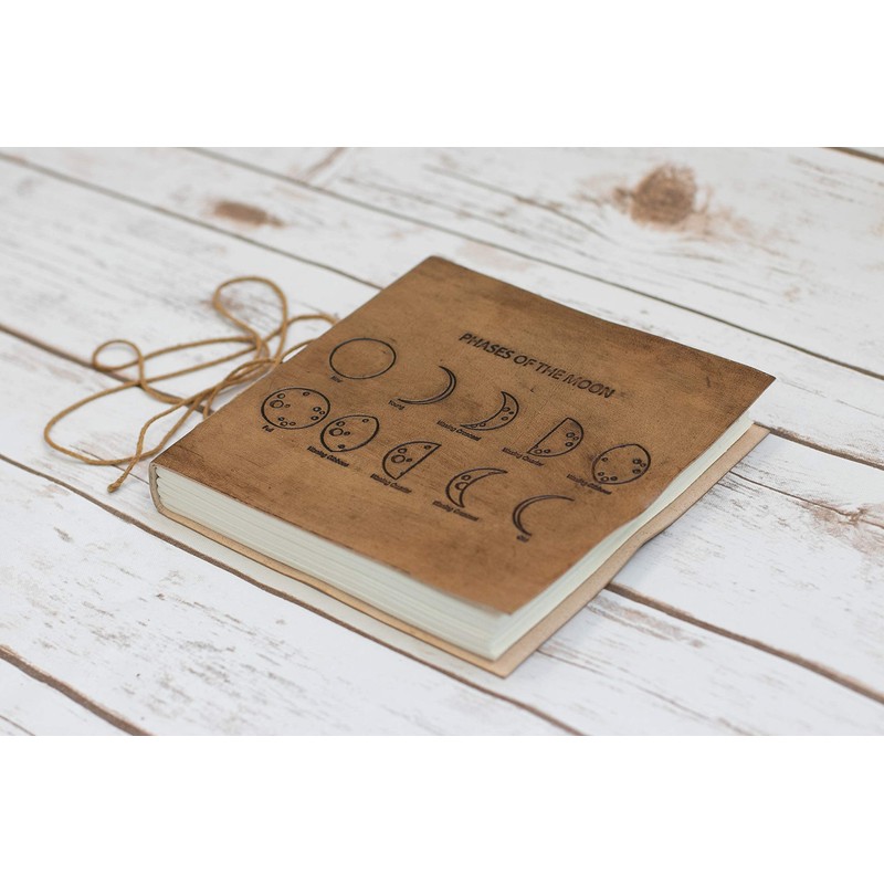 Soothi Moon Phases Handmade Antique Leather Journal for Travel or Diary, Unlined, Tan, 7''x7''