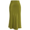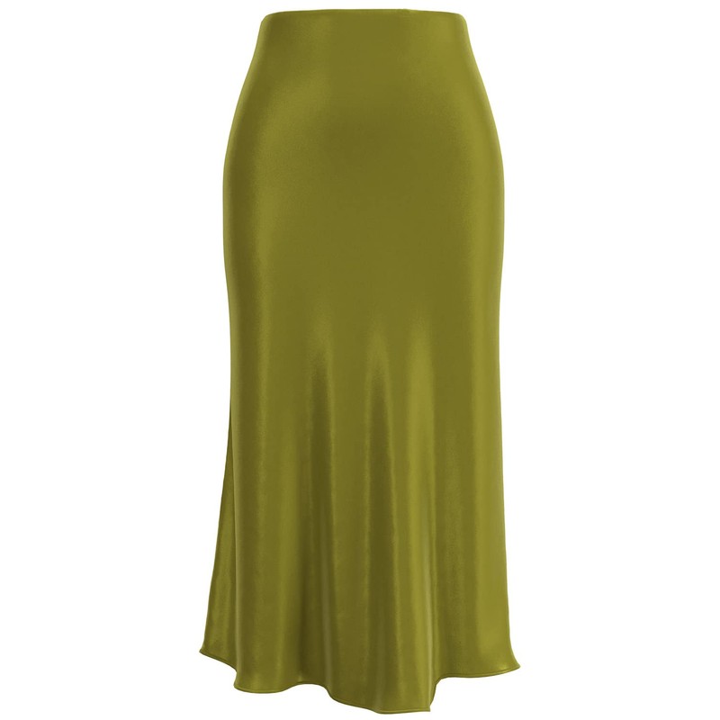 Soowalaoo Womens Leopard Print Skirt Midi Long Length Silk Satin High Waist Elastic Skirts, Light Green, Medium