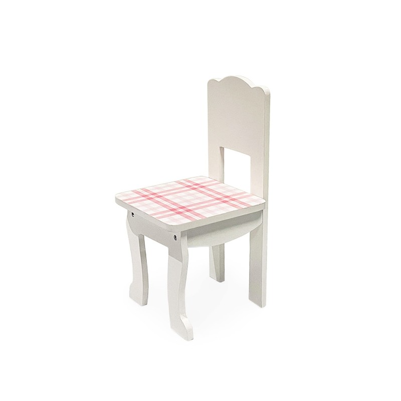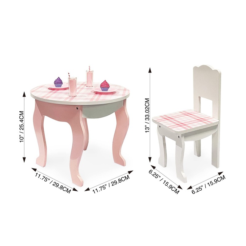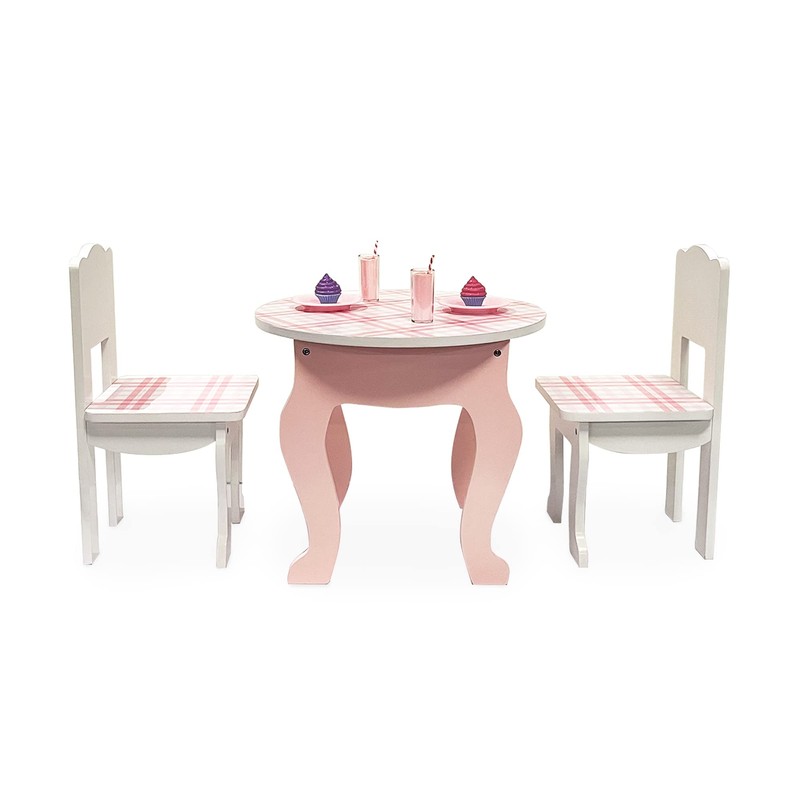 - SOPHISTICATED LOOK: This table & chair set for 18" dolls features a lovely pink & white plaid print as well as classic cabriole-inspired legs, creating a timelessly elegant feel.
