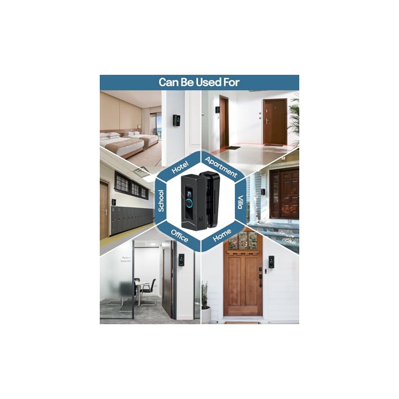 - Instalación flexible en izquierda o derecha: El soporte de puerta antirrobo para timbre de video ofrece una solución conveniente para varios diseños, sin restricciones por tipo de puerta o material de pared. Instálalo fácilmente en el lado izquierdo o derecho para garantizar el mejor ángulo de visión.