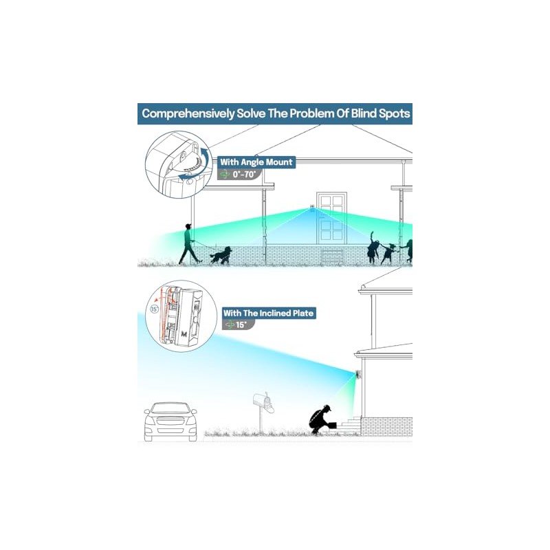 - Abordar puntos ciegos en todo el contexto: el soporte en ángulo del timbre cuenta con una placa trasera inclinada y un pivote ajustable, lo que permite un ajuste del ángulo de visión horizontal de hasta 70° y una inclinación vertical de 15°. Ajusta de forma flexible el ángulo del timbre para mejorar la visibilidad y garantizar la seguridad del hogar.
