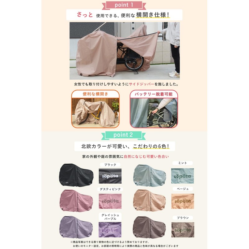 Söpöta SOP-MCO Bicycle Cover, For Children, Waterproof, Thick, 250D, Side Opening, Stylish, Sopota (Normal Use, Brown)