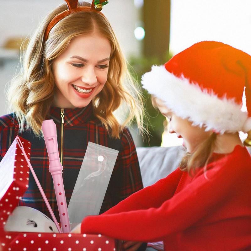 SDREAM Soprano Recorder Instrument for Beginners Students - German Fingering C Key 8 Hole Flute ABS Descant Recorders with Cleaning Rod Fingering Chart, Musical Gifts Pink