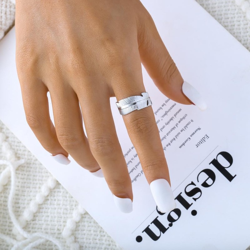 Sora Tuki Chunky Gold Rings for Women Adjustable Dainty Silver Rings for Women Gold Stackable Thin Rings Bold Thick Statement Rings Silver Gold Plated Jewelry (8_Silver Feather)