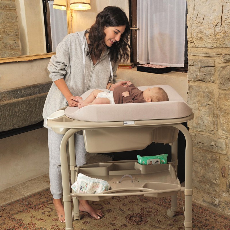 - CONVENIENT DESIGN: The Sorelle Bagnetto Cambio tub and changing pad is ideal for the smallest of bathrooms for bathing and dressing your baby with ease and comfort. There are multiple soap and sponge compartments and a storage compartment with bottle tray.