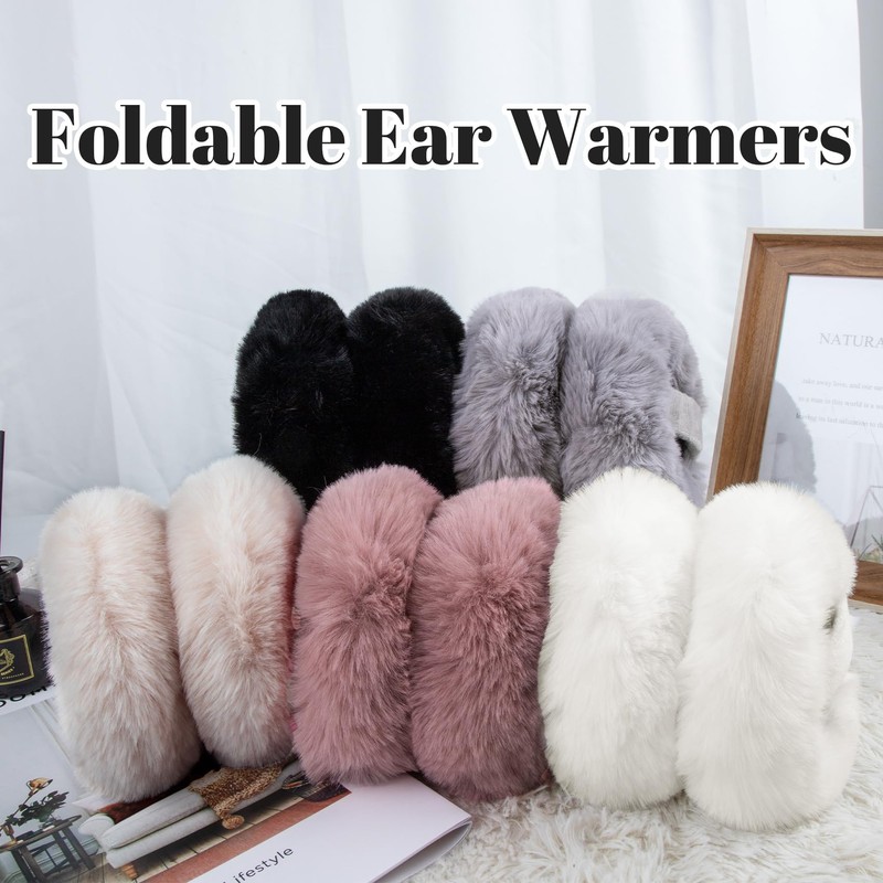 Sorfneo Winter Ear Muffs Set for Women Girls Cute Adjustable Foldable Ear Warmers Faux Fur Ear Covers Headband
