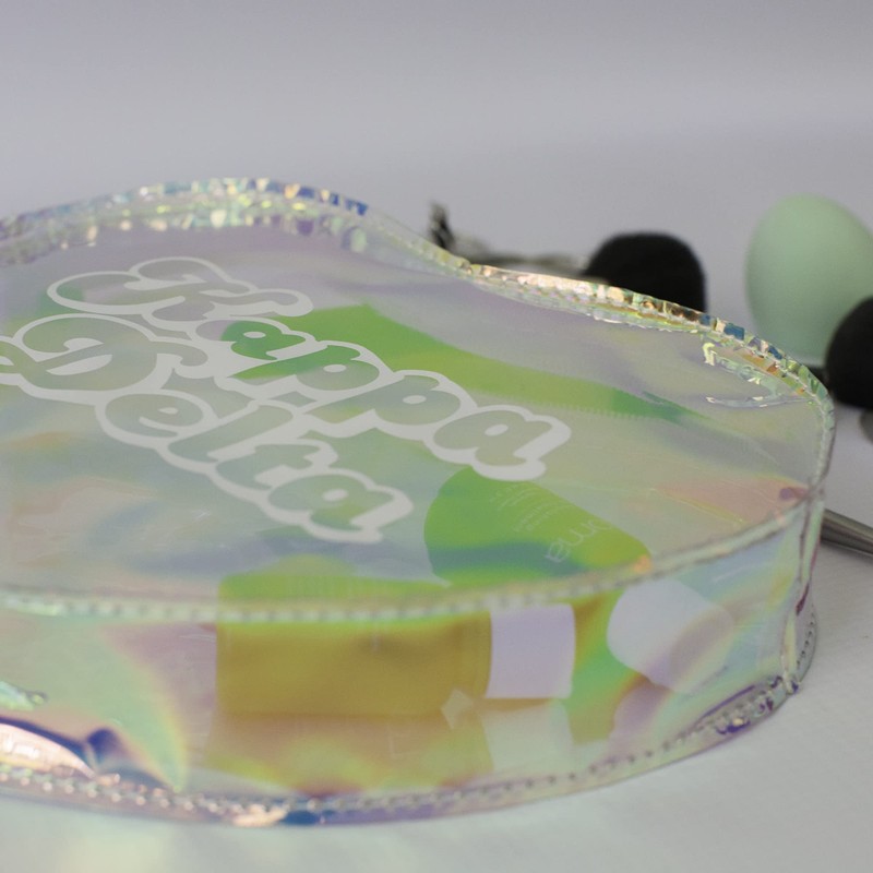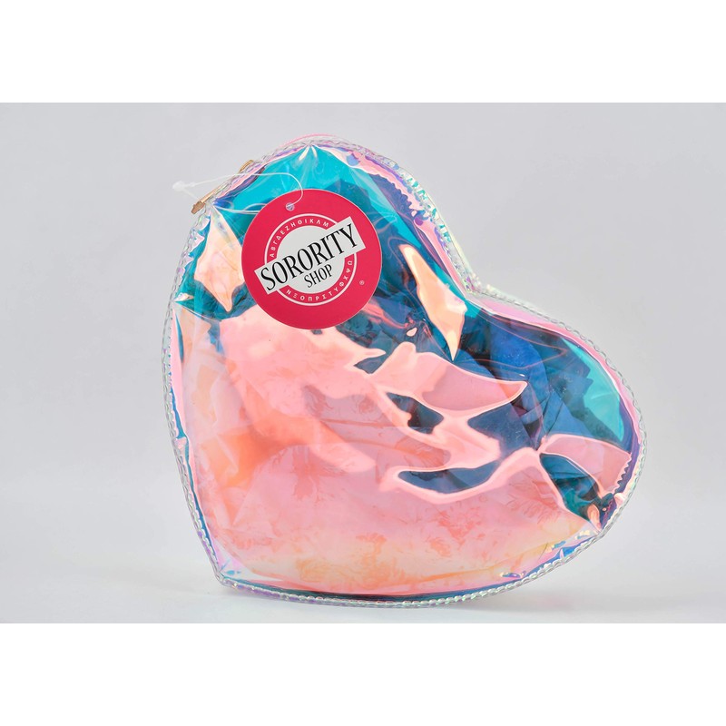 Take all your essentials on the go with our Heart Shaped Sorority Makeup Bag! Our makeup bag is made from holographic vinyl and features your sorority name in Retro white script. With a zipper enclosure to keep all your items secure, and designed in the cutest heart shape, our bag is a functional, giftable and fashionable addition to your sorority swag! * Measures 8.5" W x 7' H