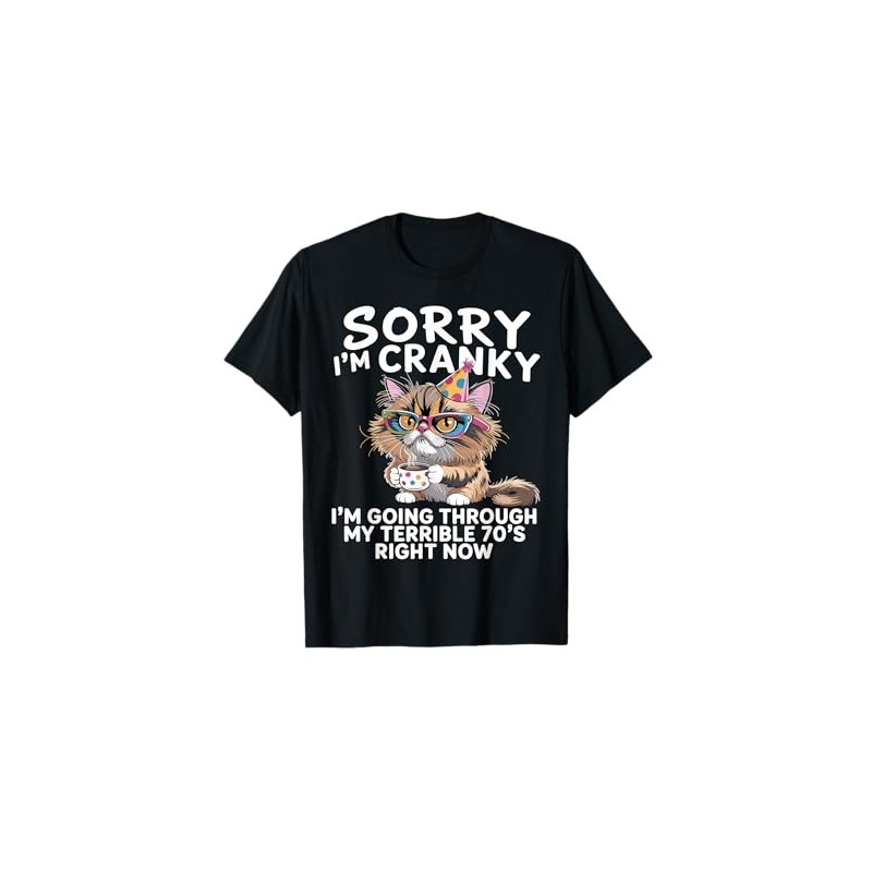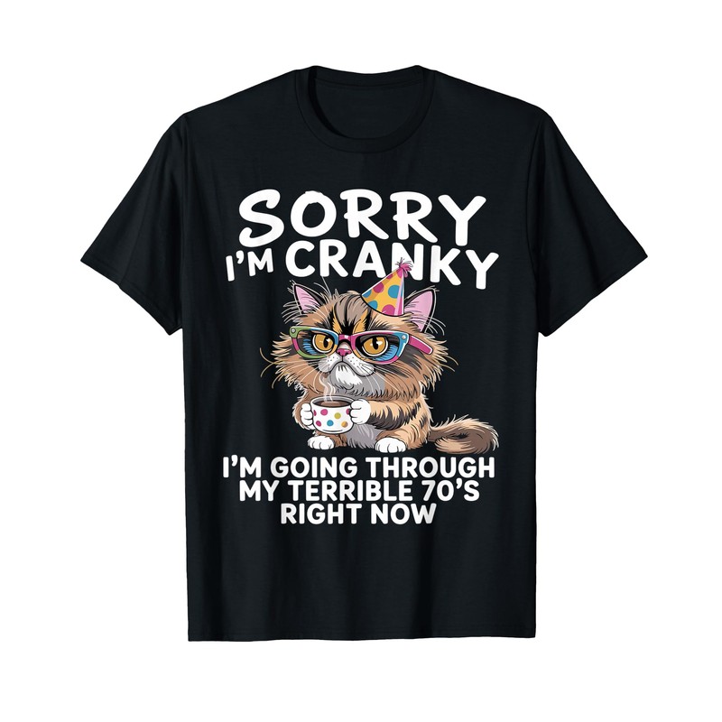 • Sorry I’m Cranky I’m Going Through My Terrible 70’s Right Now Tee is a funny way for people 70 years old to speak their minds.