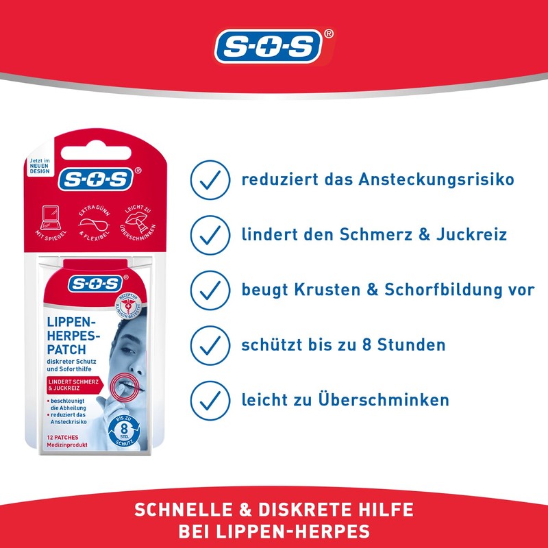 - Our promise - Our SOS cold sore patch is a certified medical product, clinically tested and can be used for children over 6 years - an alternative to cold sores gel, ointment and cream