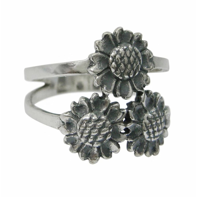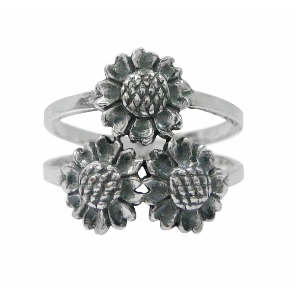 Sterling Silver Three Sunflowers Ring