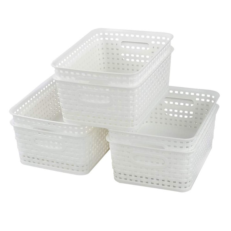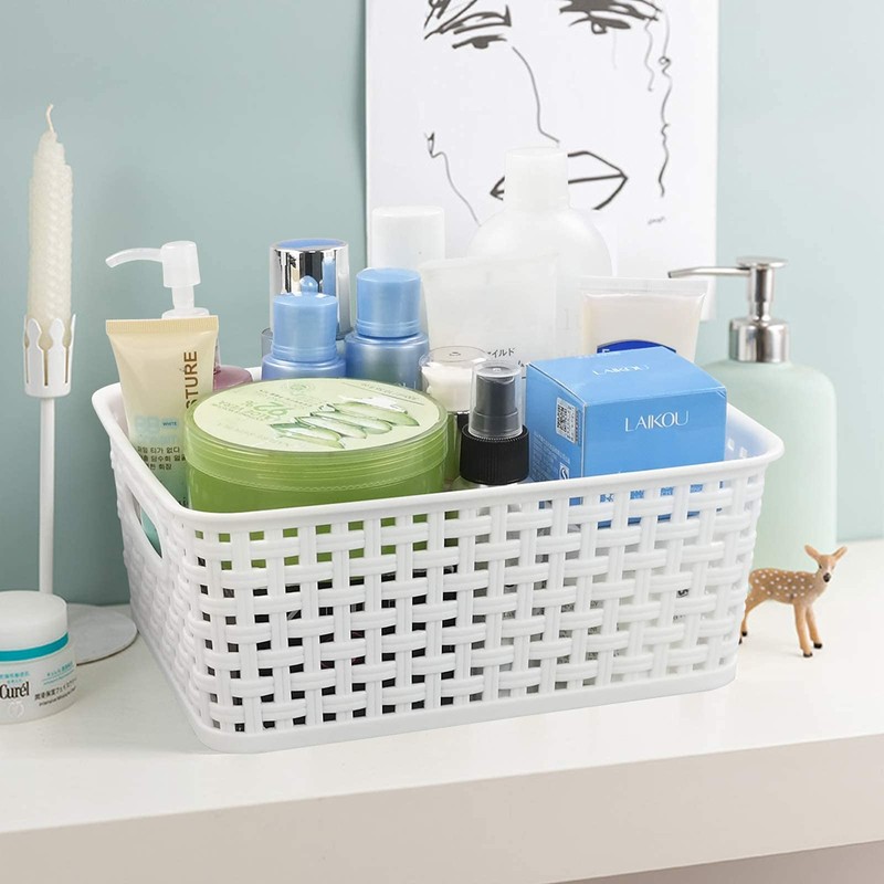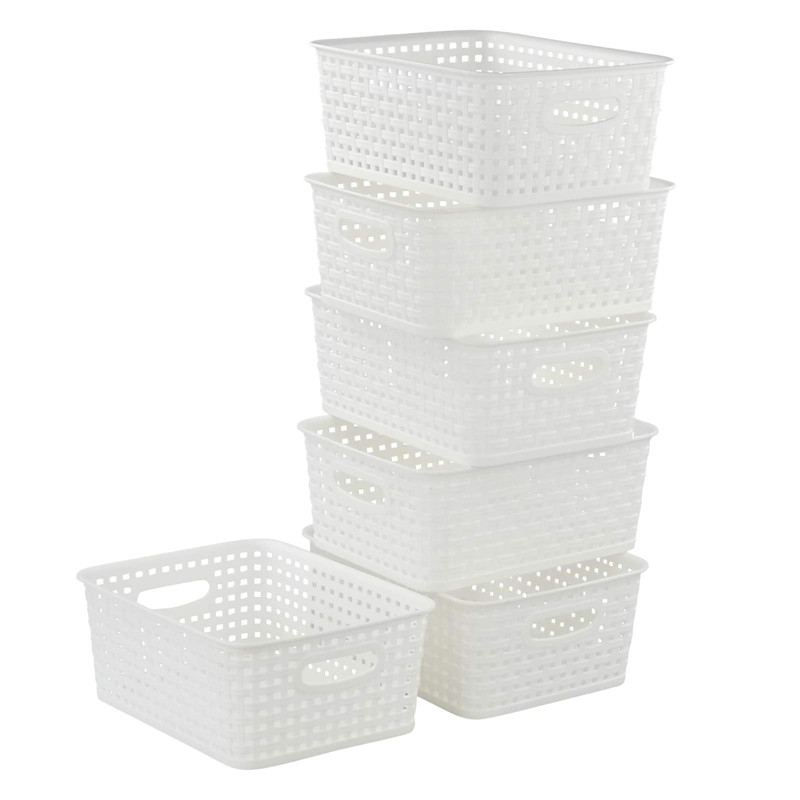 Sosody White Plastic Woven Storage Baskets, 6 Packs