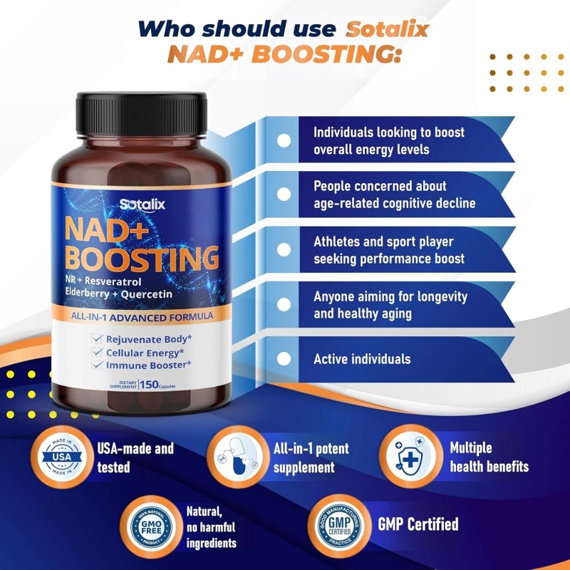SOTALIX SUPPLEMENT NAD+ Boosting All-in-1 Advanced Formula with NR, Resveratrol, Elderberry, Querce