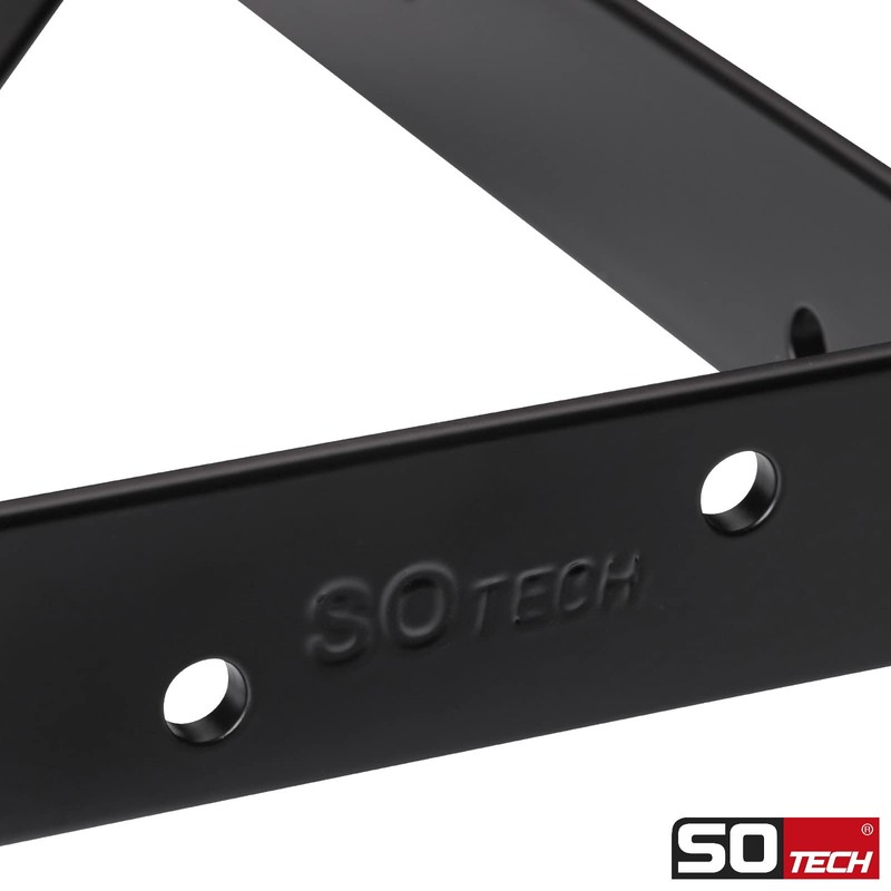 SOTECH Set of 2 Shelf Brackets (150 x 125 x 30 mm, Black, Powder Coated), Wall Bracket with Cross Brace for Stabilisation