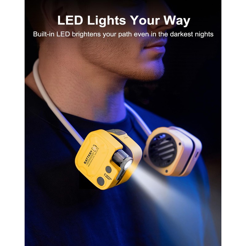 - 【Neck Fan with LED Light】: Integrated LED light provides hands-free lighting during evening activities. Stay cool and safe in the dark—perfect for camping or night commutes