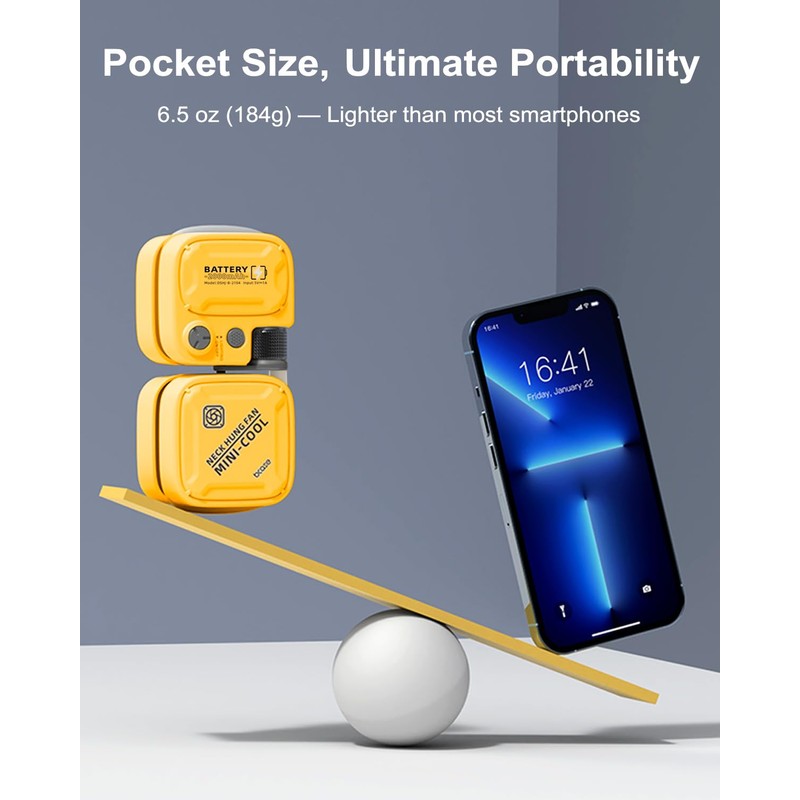 - 【Pocket Size, Ultimate Portability】: This neck cooling fan fits pockets effortlessly—6.5oz (184g) (lighter than most phones) with compact 3.94”W x 1.81”D x 2.28”H (100x46x58mm) for easy travel or daily carry
