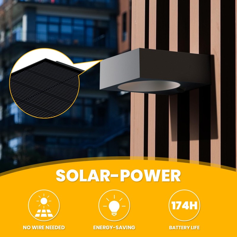 - High Efficiency: solar wall lights are made of monocrystalline silicon solar panel, the conversion rate reaches up to 22-23%,a full charge takes only 4.5 hours to illuminate all night. No wires or adapters are required solar outdoor lights. You can fix solar motion lights to walls of all types of material with the included screws