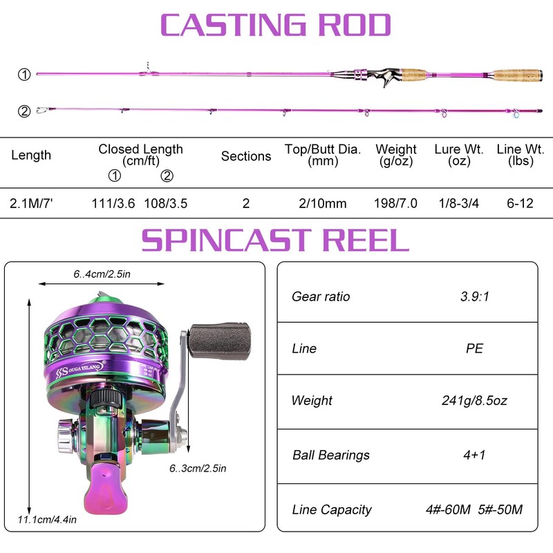 - EASY TO USE: The Sougayilang Spincast Combo comes with a 6-foot two-piece rod and reel. The reel comes pre-loaded with high-quality line so you're ready to hit the water. Whether you're curious or serious about fishing, this fishing reel makes it easy to get started